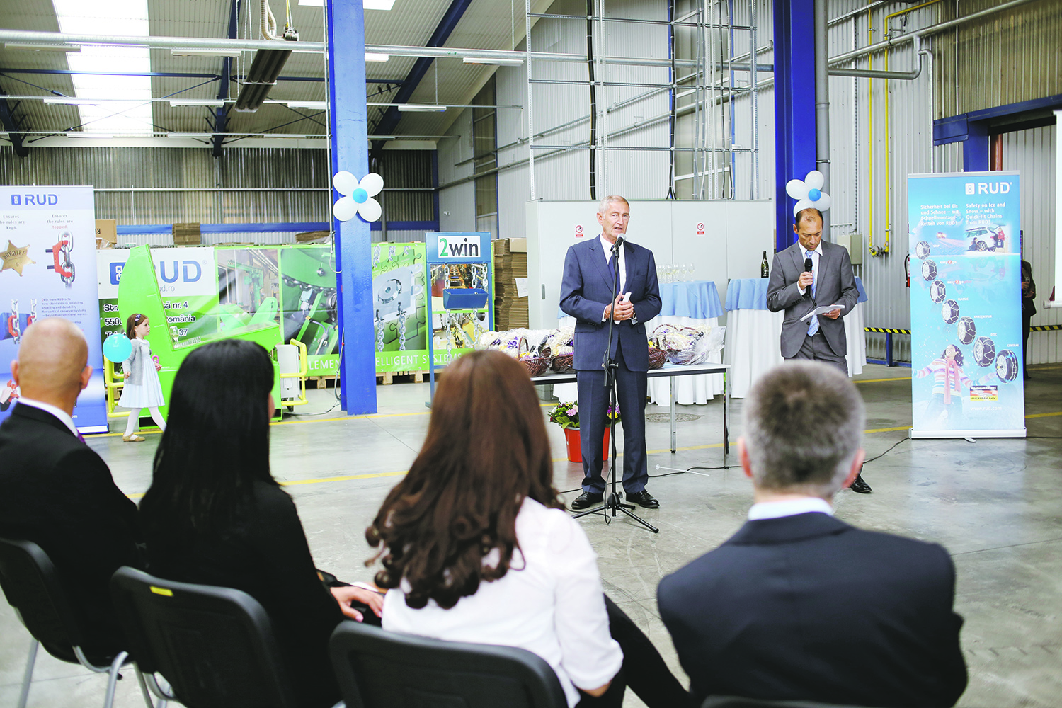 Dr. Hansjöerg Rieger, administratorul companiei a vorbit despre istoria firmei RUD Florian Rieger SRL. El s-a întors în timp, în urmă cu 11 ani, momentul în care s-a decis ca firma RUD să fie relocată într-o țară cu forță de muncă mai scăzută. S-au căutat locații în China, Turcia și în mai multe țări Est Europene. A fost ales Sibiul, pentru că România în acel moment, față de Germania aveam un raport de cost de 1 la 11, pentru că nu era departe, iar livrarea se putea face în maxim 48 de ore. Faptul că în Sibiu s-au găsit angajați care să vorbească, chiar și parțial germana a constituit un plus. Primăria le-a acordat un teren, iar cei de la RUD au început să construiască, fiind printre „pionierii” actualului Parc Industrial Vest. „Așa am început în plin câmp, fără infrastructură, curent și apă, dar domnul primar Iohannis și-a respectat cuvântul dat. Așa după cum se poate vedea, avem în jurul nostru un parc industrial atractiv, cu firme importante din industrie”, a spus Dr. Hansjöerg Rieger. O echipă formată din 3 persoane, condusă de Florian Rieger, fiul domniei sale, a preluat activitățile de construcție. O parte dintre angajații care au pus umărul la ridicarea companiei RUD din Sibiu, lucrează și astăzi, iar pentru aceștia, conducerea RUD și-a exprimat considerația. Se produce primul lanț. O realizare fantastică, așa cum a rămas în amintirea lui Dr. Hansjöerg Rieger. „Aceasta a fost posibilă în primul rând datorită imensei implicări a fiului meu Florian, care, cu o energie imensă și un elan tineresc a reușit această realizare. Sunt recunoscător că unii angajați, au fost alături de noi de la început și până astăzi. O companie poate avea succes doar cu o echipă de bază, formată din angajați experimentați și fideli. De aceea le mulțumesc tuturor angajaților RUD, pentru performanțele obținute”. Lait motivul firmei RUD, „un lanţ este rezistent cât cea mai slabă verigă a sa” este astăzi mai susținut ca niciodată. De 10 ani de muncă asiduă, de 10 ani de calitate în domeniul producției de lanțuri, de 10 ani de creștere a activității și a performanței, de 10 ani în care lanțul RUD, indiferent pentru ce a fost produs, nu a avut egal.