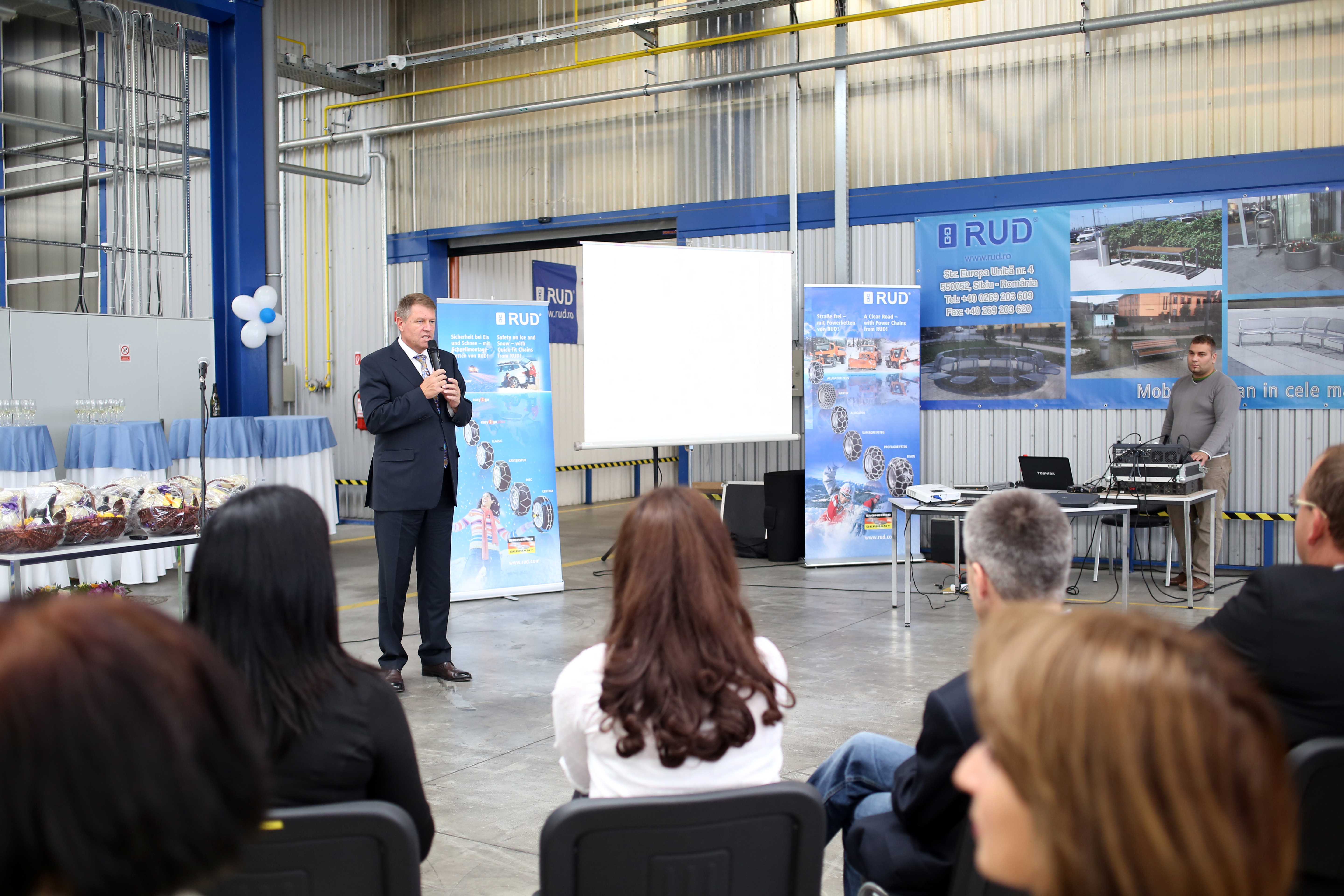 Primarul Klaus Iohannis a fost prezent la aniversarea celor 10 ani ai firmei Rud Florian Rieger. „Domnul Dr. Hansjöerg Rieger a fost unul din primii care au crezut, ceea ce un tânăr primar i-a spus despre o viitoare zonă industrială. Atunci când a fost propunerea mea, aici nu a existat nimic. Nici măcar porumb, doar buruiană și cred că putem să spunem, fără falsă modestie că Dr. Hansjöerg Riger și cu mine am crezut unul în celălalt și iată că avem zonă industrială și avem o filială a firmei RUD, care este foarte stabilă și foarte bună. Pentru Sibiu este foarte important să avem investiții și faptul că firma RUD s-a extins de la 3 000 de metri pătrați la, astăzi, aproximativ 10.000 de metri pătrați, arată un lucru important. Arată că locația economică Sibiu este considerată în continuare una foarte bună.”